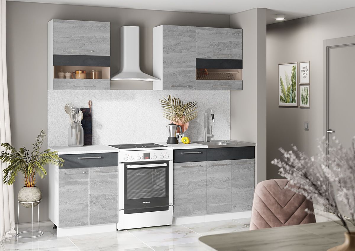 Кухонный гарнитур Маша угольный камень/бетонный камень-Антарес 26 мм.