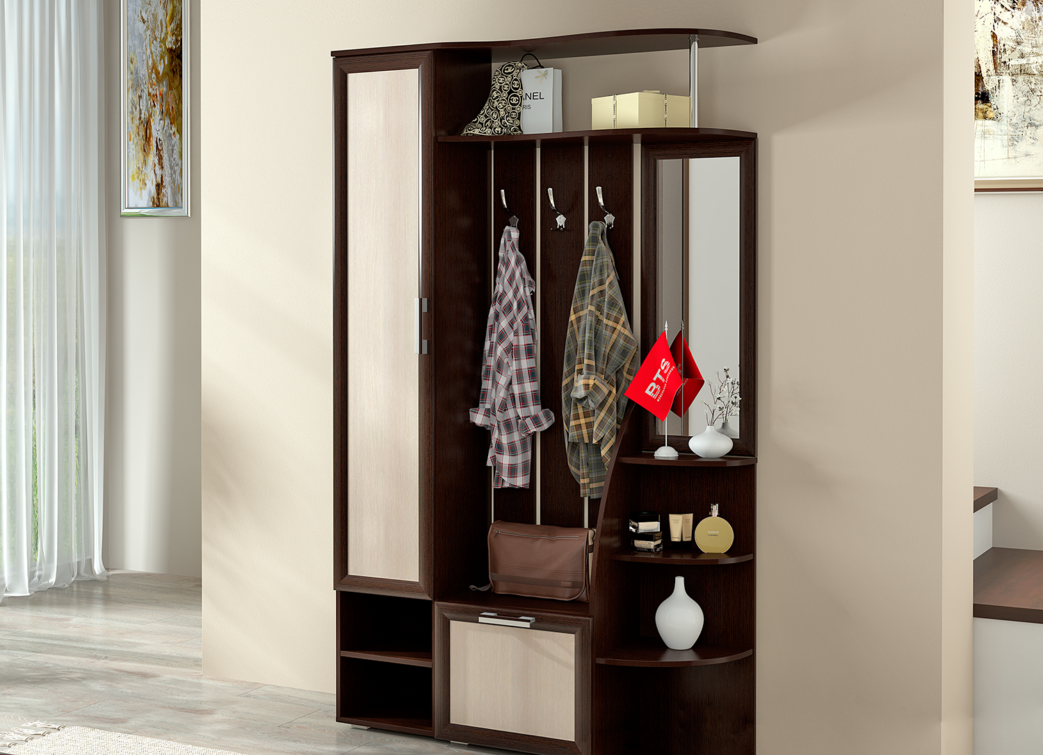 Прихожая "Ксения-2" - это превосходное решение для малогабаритного помещения благодаря своей глубине, которая составляет 352 мм. Она впишется в самую маленькую комнату и доставит максимум комфорта как для Вас, так и для ваших гостей. Модель оснащена вместительным пеналом, открытой секцией с крючками для верхней одежды, полками, а также отделениями для головных уборов и обуви. Совмещая в себе необходимую функциональность и стильный дизайн, эта модель станет незаменимым украшением вашего дома.