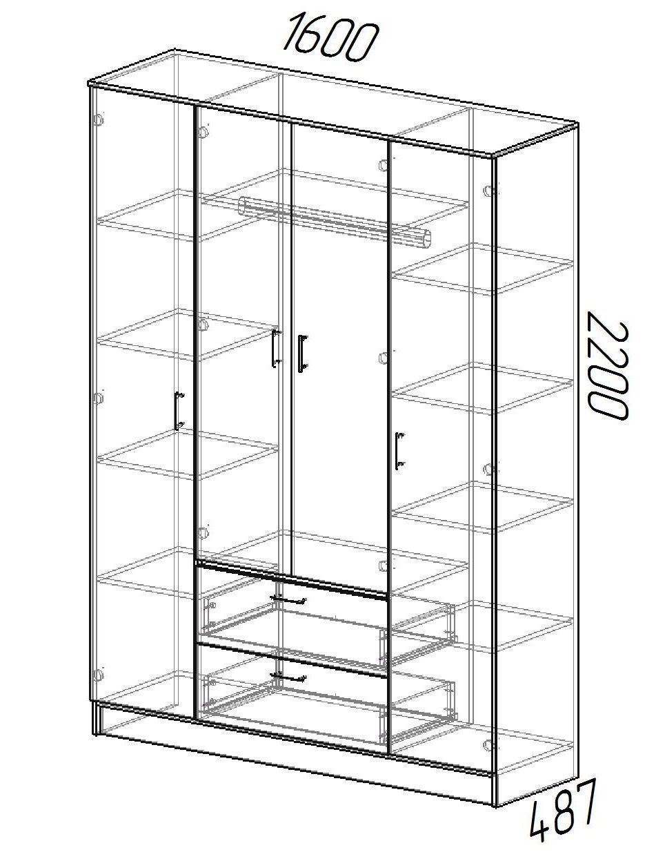 Еще больше увеличивают функциональность шкафа два выдвижных ящика на плавных направляющих.