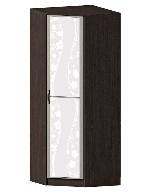 Корпус шкафа изготовлен из прочной ламинированной древесностружечной литы, устойчивой к повышенной влажности и температурным колебаниям. Фасад декорирован зеркалами с рисунком "цветочная феерия".