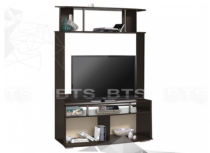 Ниша под ТВ размером рассчитана на большой телевизор с диагональю 50 дюймов, на нижние полки вы можете разместить аудио и видео аппаратуру. Центральная секция может комплектоваться как стеклопеналом, так и шкафом, или можно совместить и то, и другое, в зависимости от ваших приоритетов.