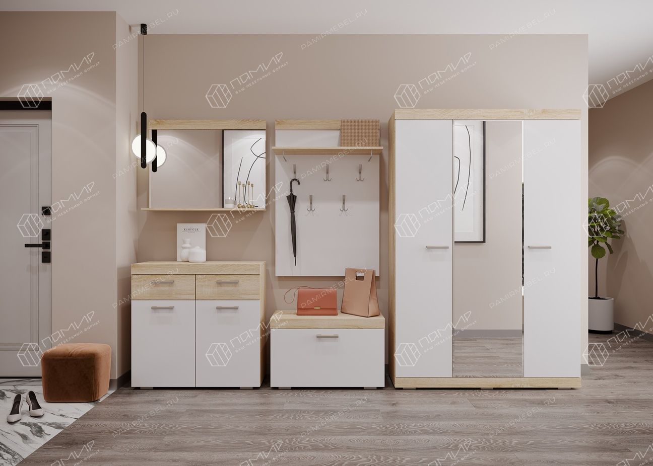 Металлические уголки для опоры полки. Крепится к стене через навесные элементы. Верхняя часть вешалки обрамлёна профилем MDF.